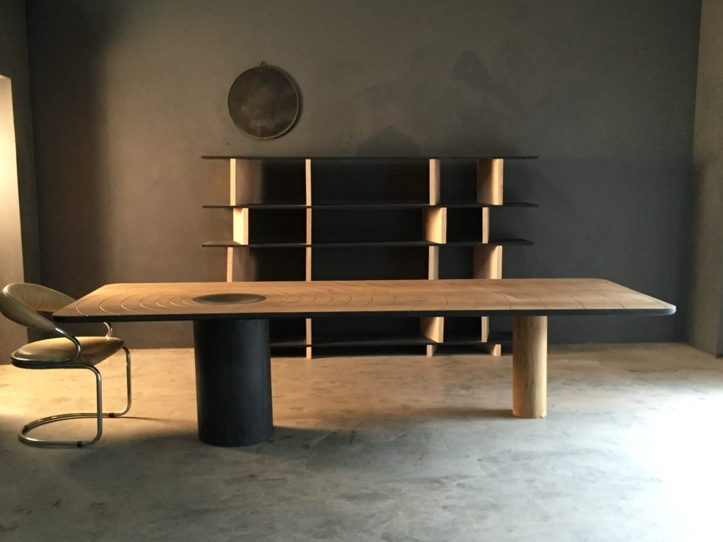 Proche de l’épure, d’une apparente ligne austère, cette table tient la ‘place’ au coeur d’un intérieur contemporain, mettant en valeur l’espace qu’on lui confère: qu’il soit minimaliste ou complexe.